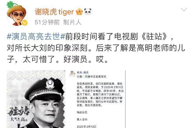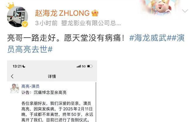 2月13日,娱乐圈传来噩耗,著名演员高亮去世,享年50岁。